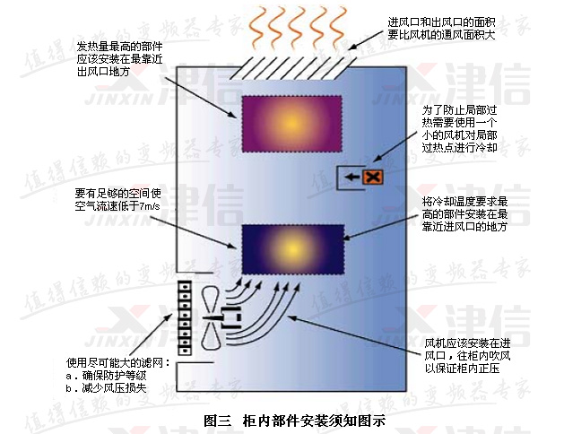8) 確保柜體的散熱量大于變頻器的發熱量;